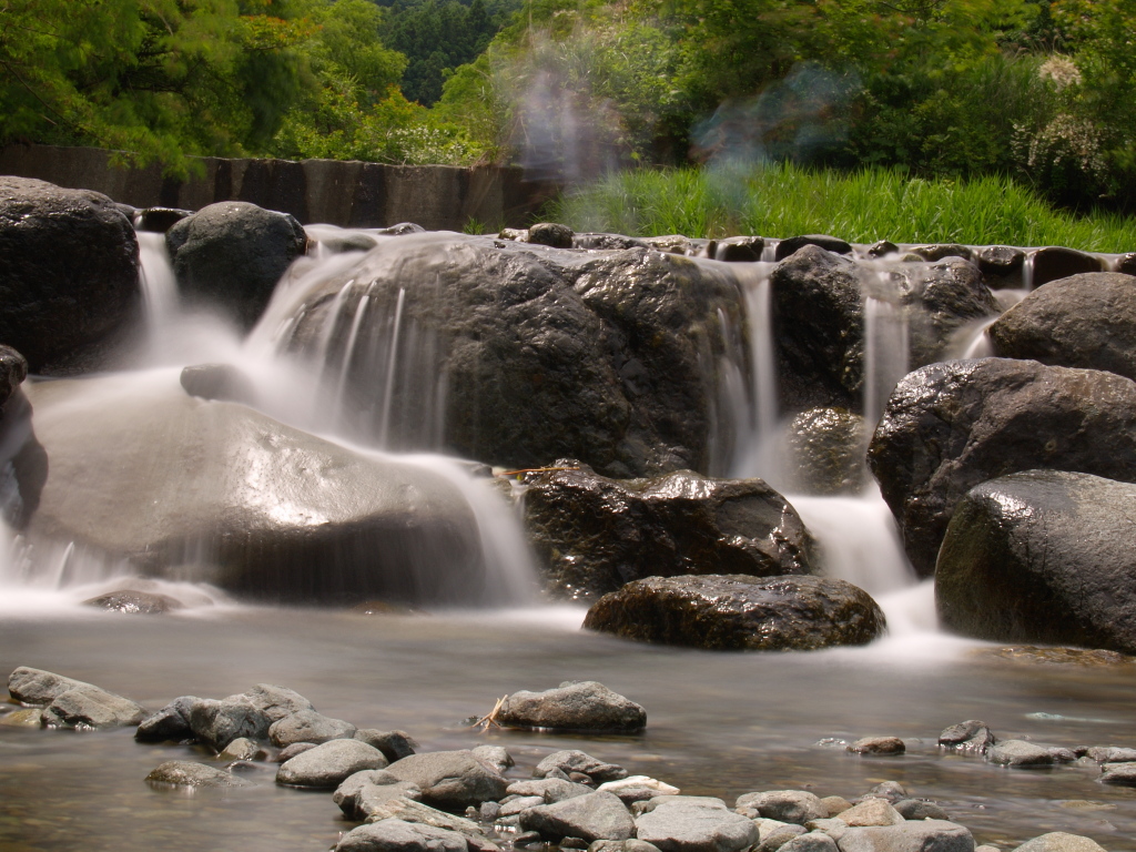 ・川の水の流れは少しずつ違うのでぼやけた感じで撮れ